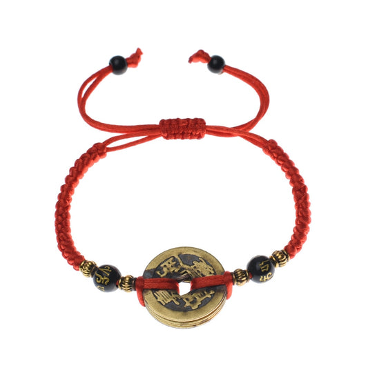 Lucky Red String Feng Shui Pulsera de moneda de cobre