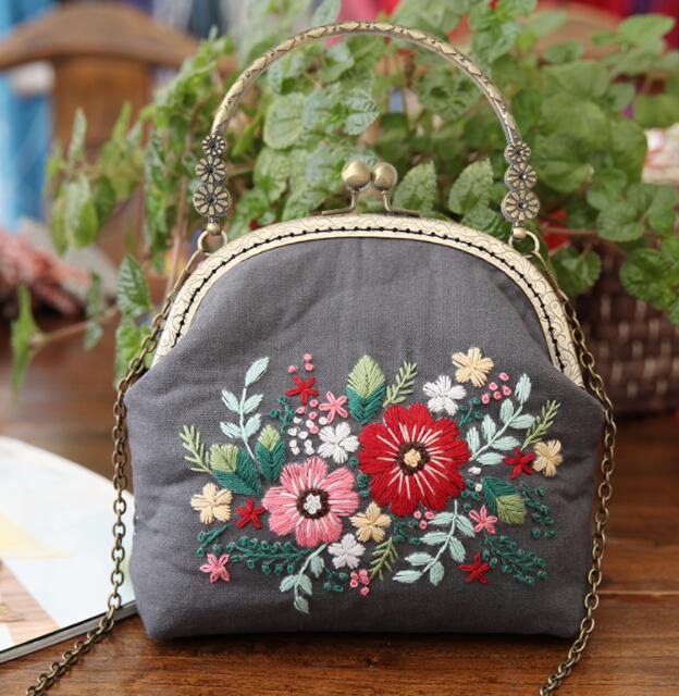 Bolsa de bordado de cinta hecha a mano 3D DIY