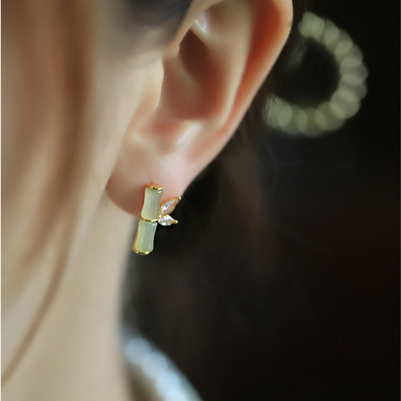 Aretes de bambú con ópalo chino