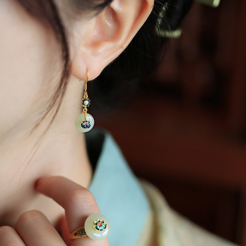 Pendientes colgantes de loto de piedra de cristal natural